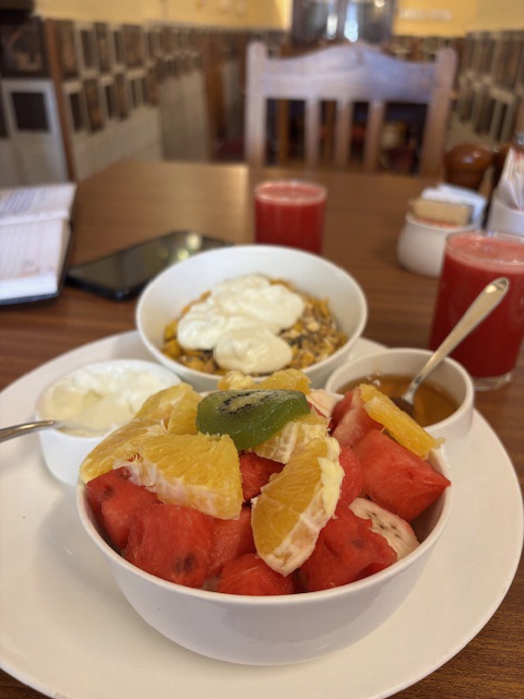 Next came the Healthy Breakfast, which, in many establishments, would be code for bland, joyless food. Not here. A vibrant plate greeted us, featuring a bowl of granola and yogurt and fresh fruit that tasted as though it had just been plucked from a tree, and a slice of sourdough that was wonderfully tangy.