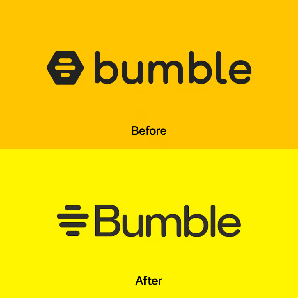 Bumble refreshed its brand identity by simplifying its logo to a honeycomb-inspired symbol and tweaking its signature yellow to a warmer hue.