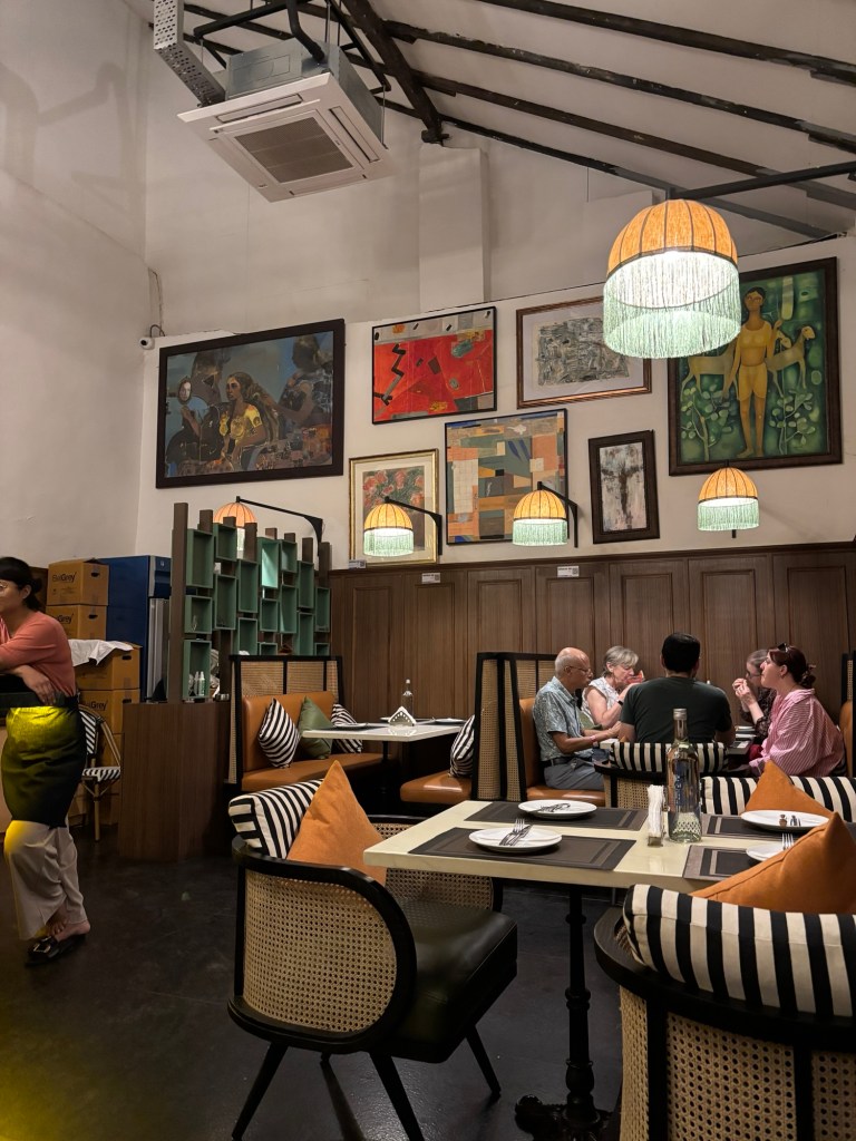 The first impression? Nice. Classy. The kind of place that makes you sit up a little straighter and pretend you know things about wine. The lighting was just right—not so dim that you needed a flashlight to read the menu, but not so bright that it felt like a hospital cafeteria. The walls were dotted with eclectic paintings, the kind that make you want to lean in and say, “Hmm, interesting,” even if you have no idea what’s going on.