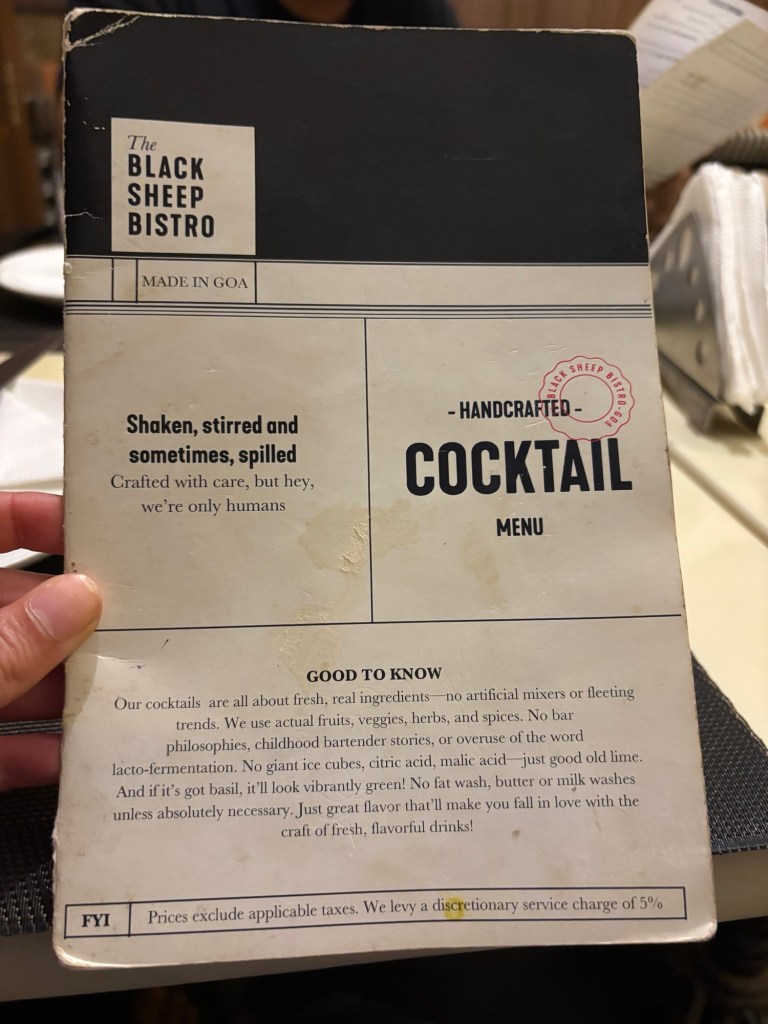 But let’s take a moment to appreciate the real genius of Black Sheep Bistro—the cocktail names. Each one a playful nod to classic Goan surnames, making you feel like you were about to sip on the liquid essence of a local legend. The Negroni D’Costa, The Desai Old Fashioned— probably someone’s grandfather’s favorite drink. The Naik Feni Sour—a clever Goan twist on a classic, making feni the star of the show. And the Coriander Paes—because nothing says Goa like a cocktail with coriander in it. It’s the kind of menu that makes you smile before you even take a sip. And once you do? Well, let’s just say, you’re in for a good night.