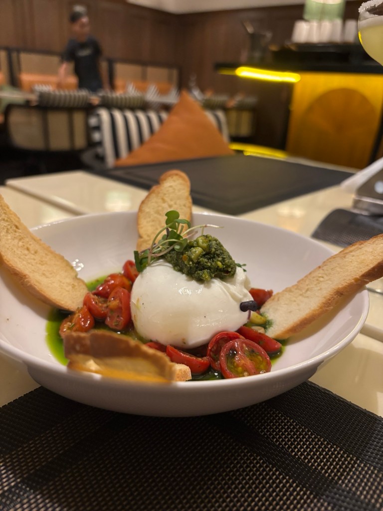 Next came the burrata salad—fresh, creamy, and delicate enough to make you feel momentarily virtuous before diving into whatever deep-fried deliciousness comes next.