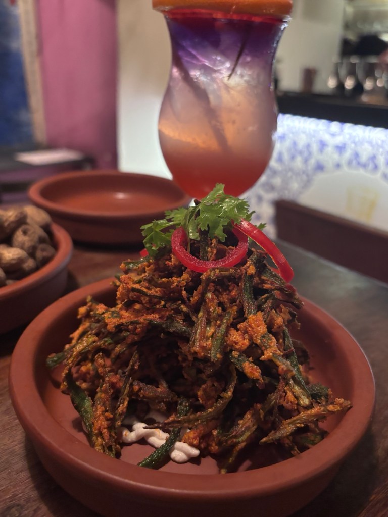 We also tried the Kurkure Bhindi (Fried and fabulous, in any case). Crunchy, salty, addictive — basically Goan okra in its party dress.