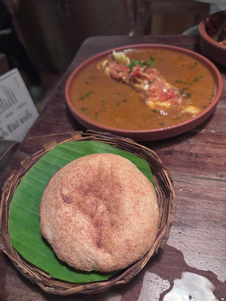 Then came the Ros Omelette, and friends, I must pause here. Because this was Ros Omelette Royalty. It didn’t arrive on a throne, but it might as well have. Swimming in a spiced gravy that could wake the dead, served with poie, the soft, pillowy bread that makes one wonder why we ever bothered with toast. It was — and I do not say this lightly — the best Ros Omelette of my life.