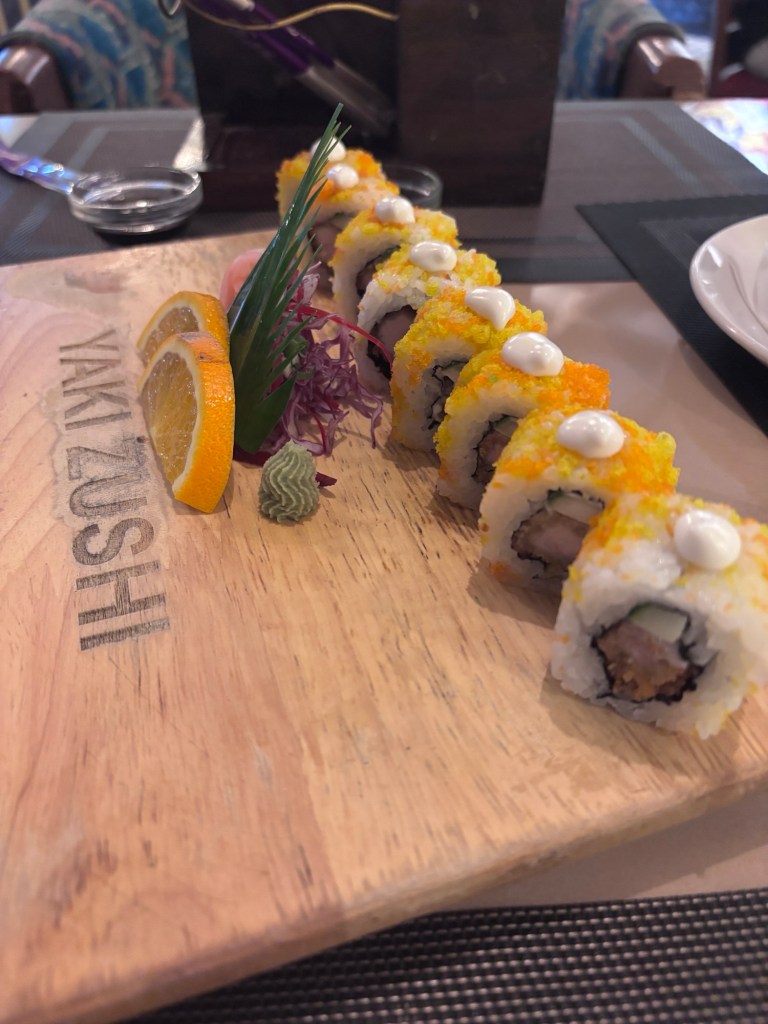 So, for our second jaunt to Yaki Zushi, we walked in expecting the usual cozy familiarity — but lo and behold, the place has had what I can only describe as a glow-up. Think less “Japanese hole-in-the-wall” and more “Tokyo got bored and moved to Goa.” The walls? Chic. The chairs? Cushy. The vibe? Energetic, bright, and very family-friendly — though a slightly softer lighting setup could really add that warm, intimate touch for those secretly pretending they’re on a date with someone from a K-drama.