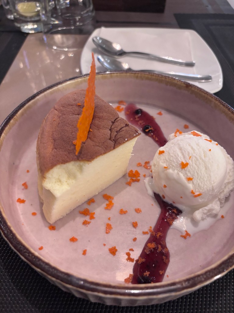 We ended with a Japanese Cheesecake — wobbly, delicate, and as light as a compliment from your in-laws. It didn’t knock our socks off, but it did leave a sweet impression, which, to be fair, is what most desserts should aim for.