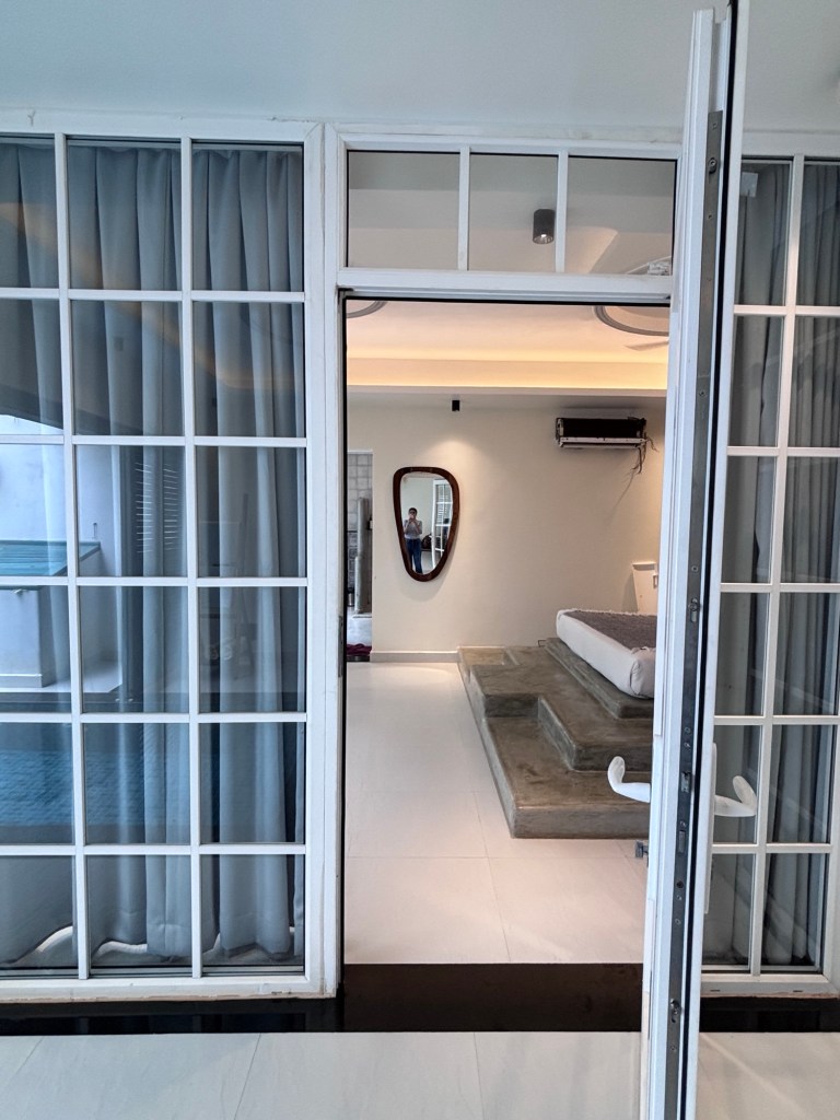 The suite is, to put it bluntly, ridiculous. Ridiculous in the way only the best boutique hotels can be. Every corner screams, “Please take a photo of me. Please.” It’s boho-chic with Zen undertones, done entirely in whites and light greys that make you feel like you’ve stumbled into a curated Instagram grid. The kind of place where you imagine wellness influencers casually sipping matcha and talking about “alignment.”