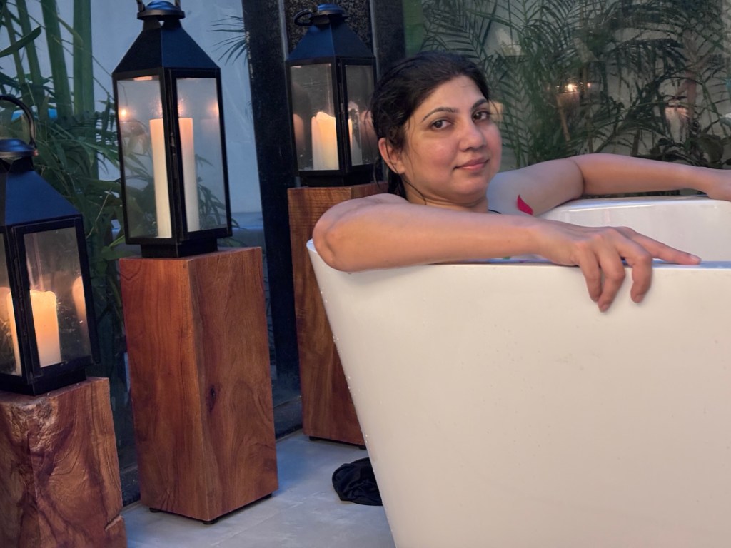 And the bathroom. Honestly, the bathroom deserves a Netflix special of its own. Enormous, with a big bath tub in the corner, facing lush greens. They’ve thrown in everything—candles, shower, utility bath accessories—like someone in charge simply muttered: “Let’s just throw heaven into this room and see what happens.” It works. It really, really works.