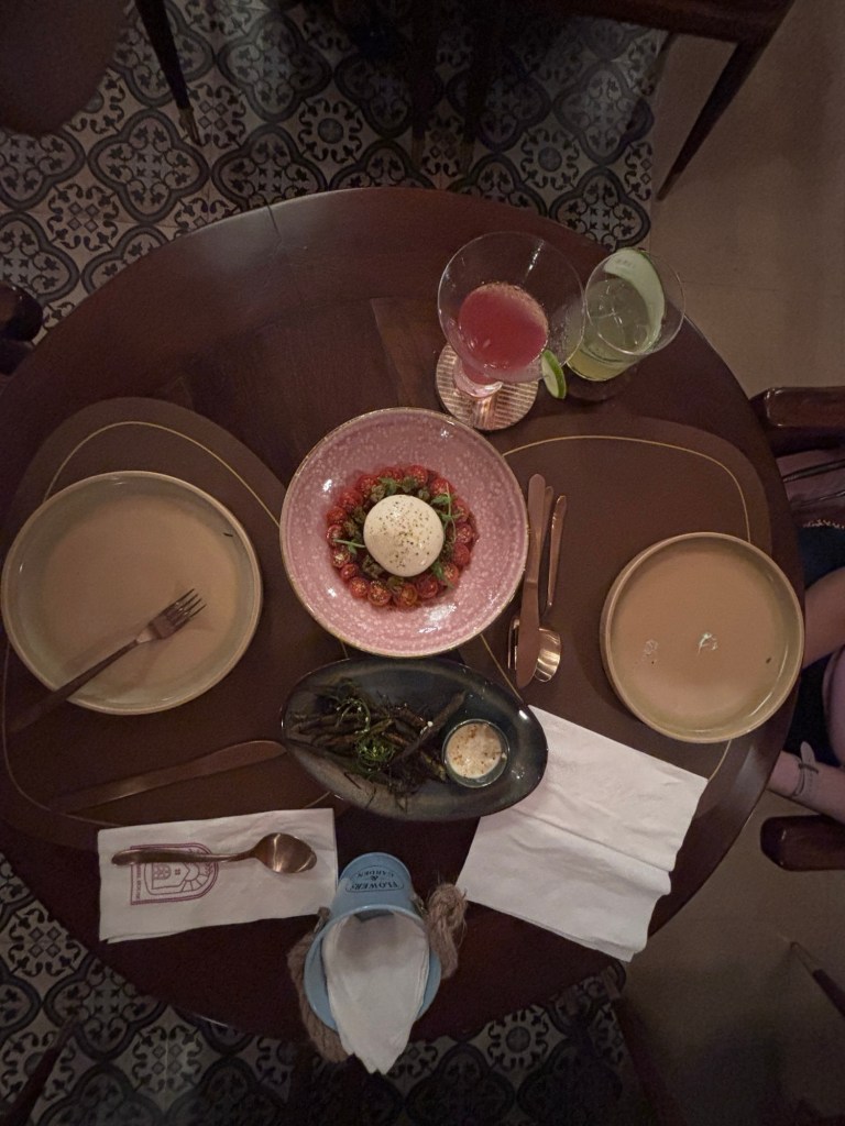 We began with cocktails—or rather, mocktails with a wink and a splash of gin. We ordered the Basil Mirage and the Coastal Bloom, both advertised with the sort of florid ingredient lists that could double as perfume copy.