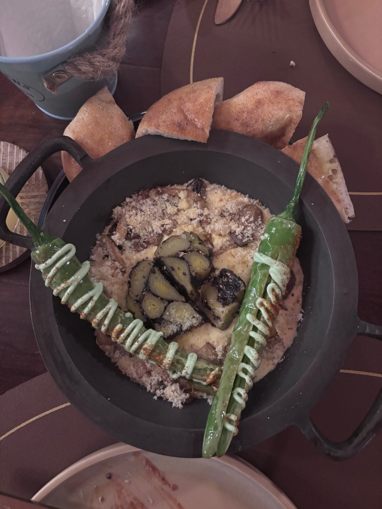 Then, salvation: Drunk Night in Bhutan. Roasted leeks with datshi, smoked cheddar sauce, samosa, mirchi, and toast. This was bold, messy, fun—a dish that flirted with chaos but somehow pulled it off. It’s exactly the sort of invention a new restaurant needs: quirky, memorable, and moreish. If I had to put money on their future signature, it’d be this.
