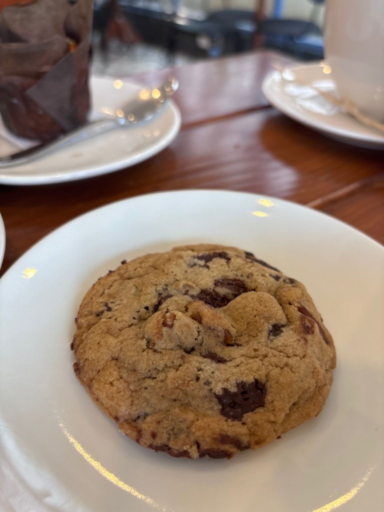 We ordered two cappuccinos, one Basque cake, and the Belgian choco chip pecan cookie. The cappuccinos arrived frothy and bold; the cookie, rich and satisfyingly hefty; the cake moist and springy with a faint swagger that all Basque cakes seem to possess.